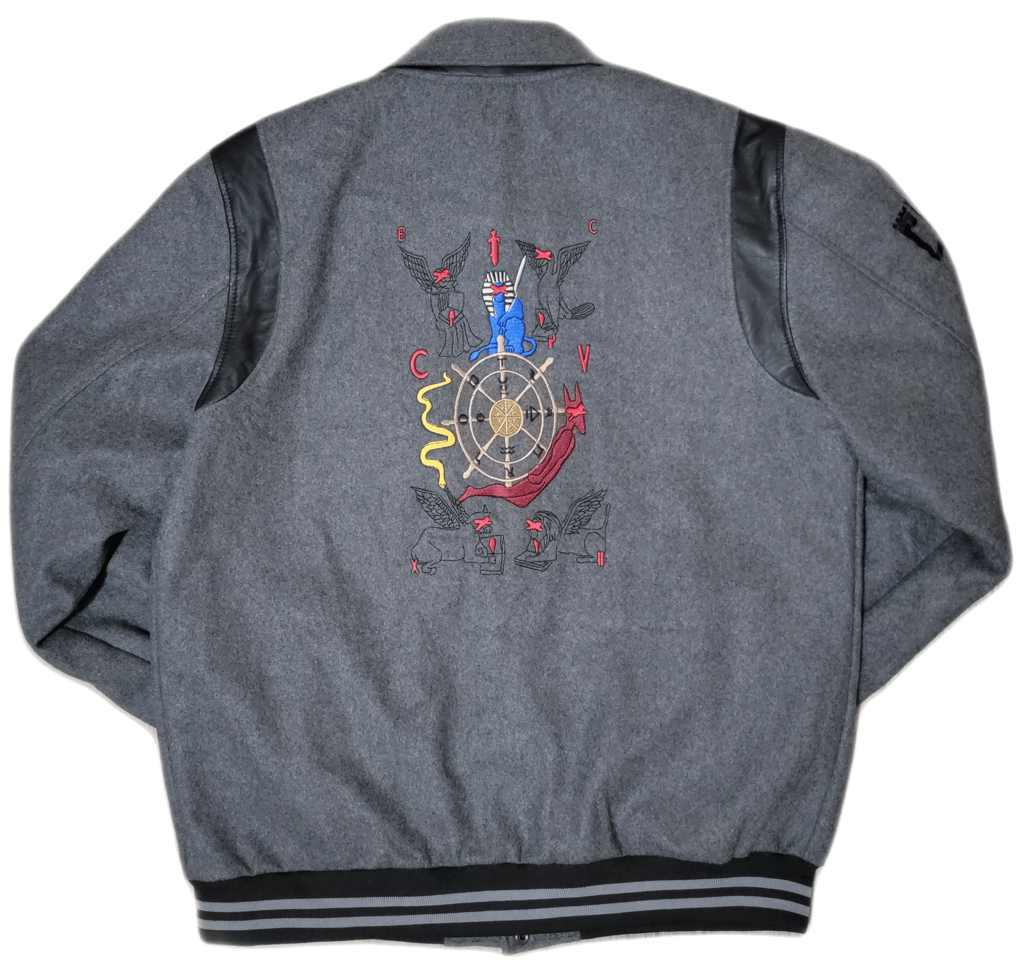 Lightweight Spring/Summer Varsity Jacket. C&V Wheel of Fortune Design on back. C&V signature logos placed on jacket.