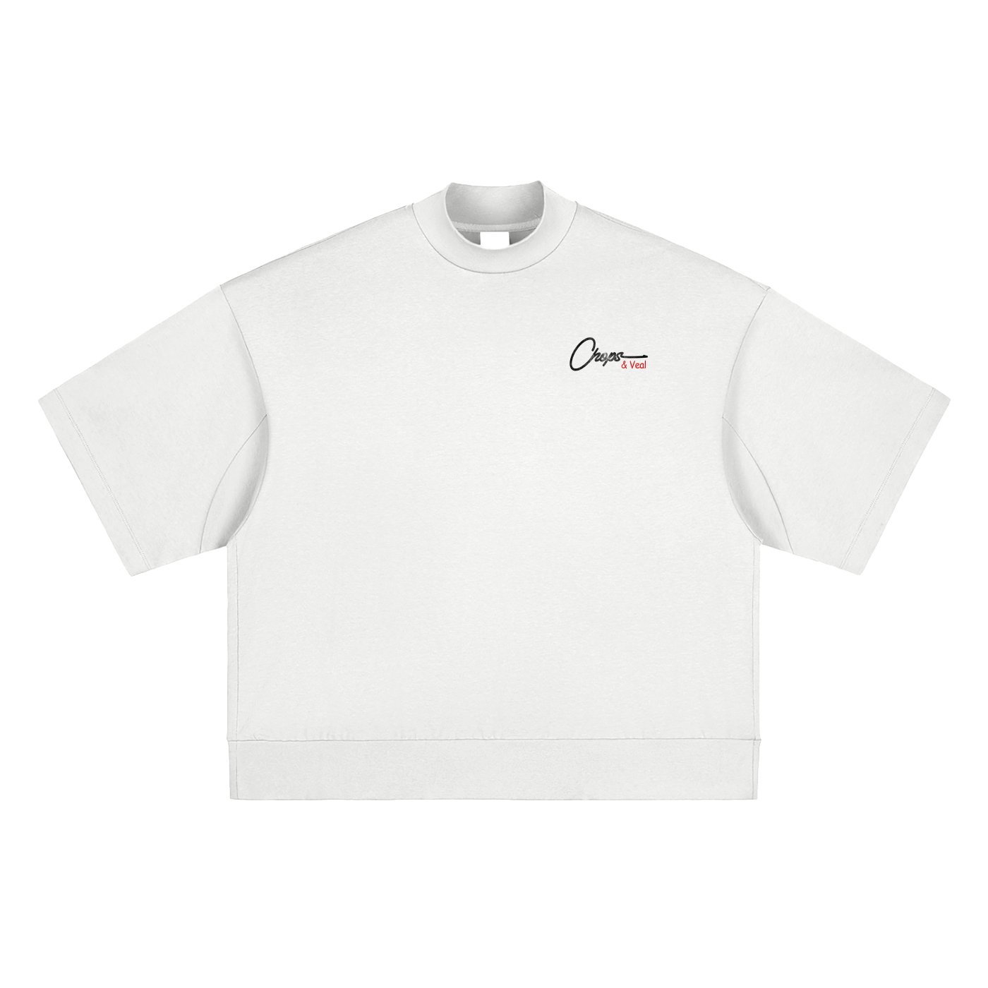 Heavyweight Oversized Mock Neck T-shirt is crafted from 100% cotton, delivering a substantial yet breathable feel. Featuring a loose, oversized fit with a ribbed hem and 3/4 sleeves, this elevated basic is designed for effortless layering and a contemporary silhouette.